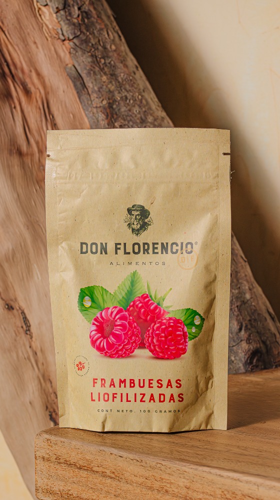The 100g presentation of freeze-dried raspberry in a three-layer bag is intended to provide 20 servings of 5g for family use or larger recipes.